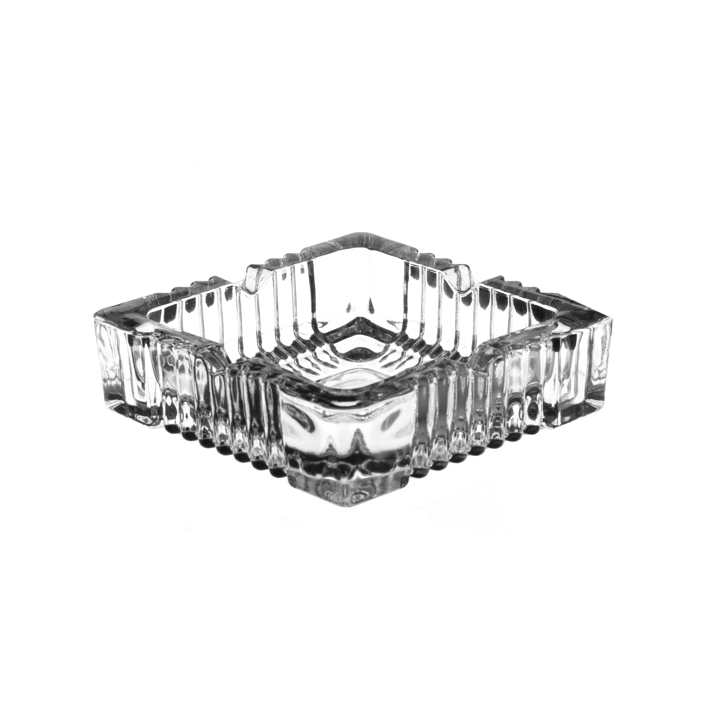 This classically styled glass ashtray features an intermittent diamond cut pattern. The glass medium makes for easy cleaning. Ideally suited to be used as a cigarette ashtray.