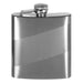 This plain metal flask uses a high polish mirror finish to create a diagonal section across the surface while the outside edges are a matte brushed steel finish. 6 ounce capacity.