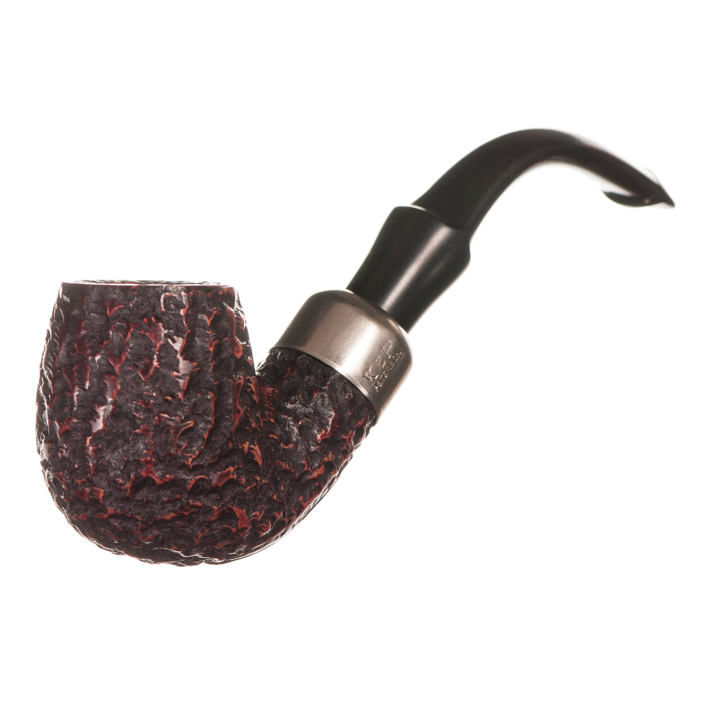 The rustic finishes adds a texture to the wood. The stem has a heavy bend, with a nickel metal band on the shaft and the trademark p-lip directs the smoke upward towards the roof of your mouth.