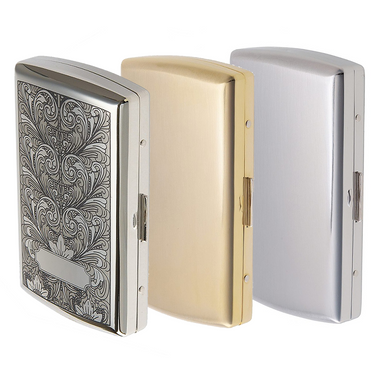 Available in Silver Satin with Arabesque print, Gold Satin or Silver Satin finishes High Quality Case Holds 12 Cigarettes Fits Up to 84mm Length...
